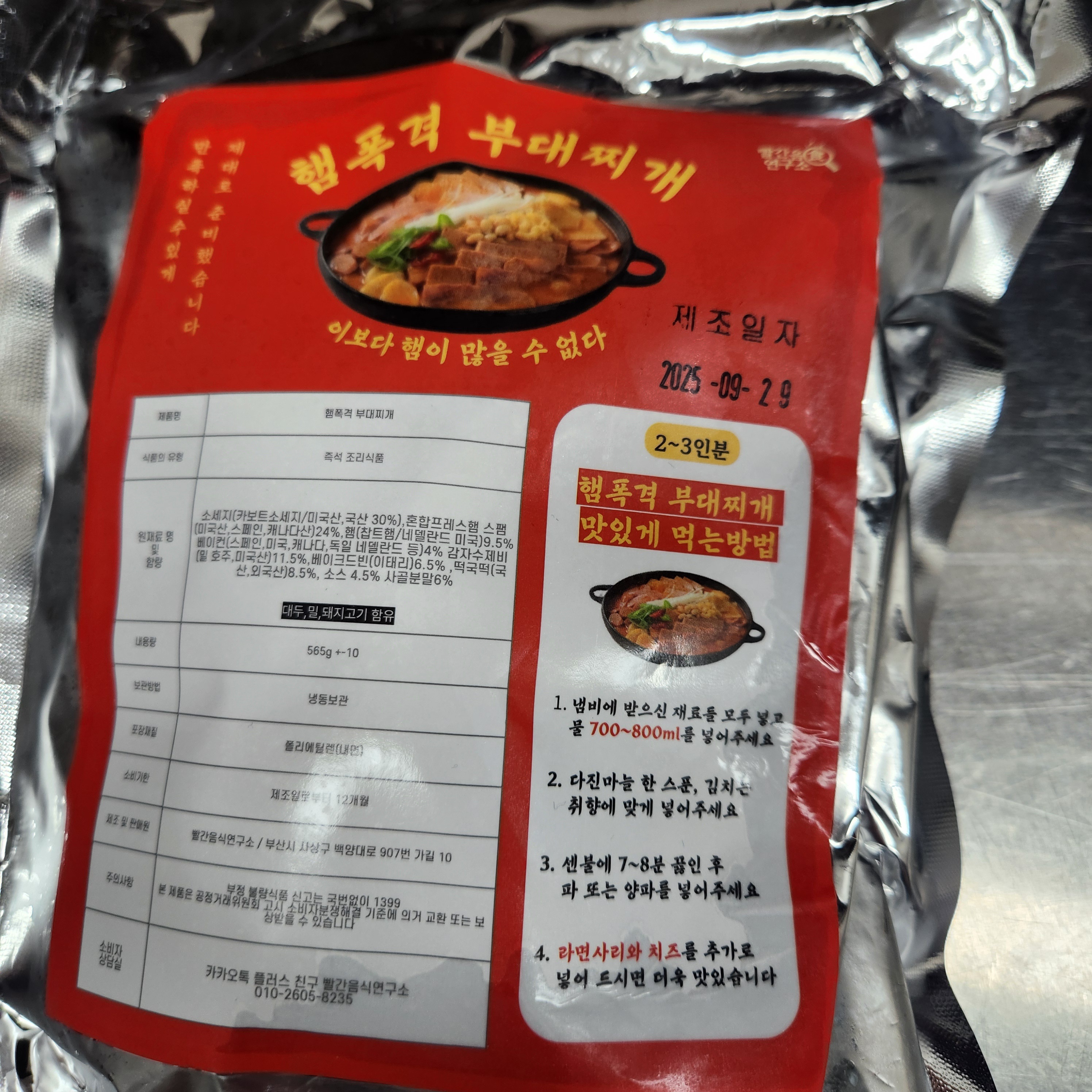 빨간음식연구소 햄폭격 부대찌개 구성.