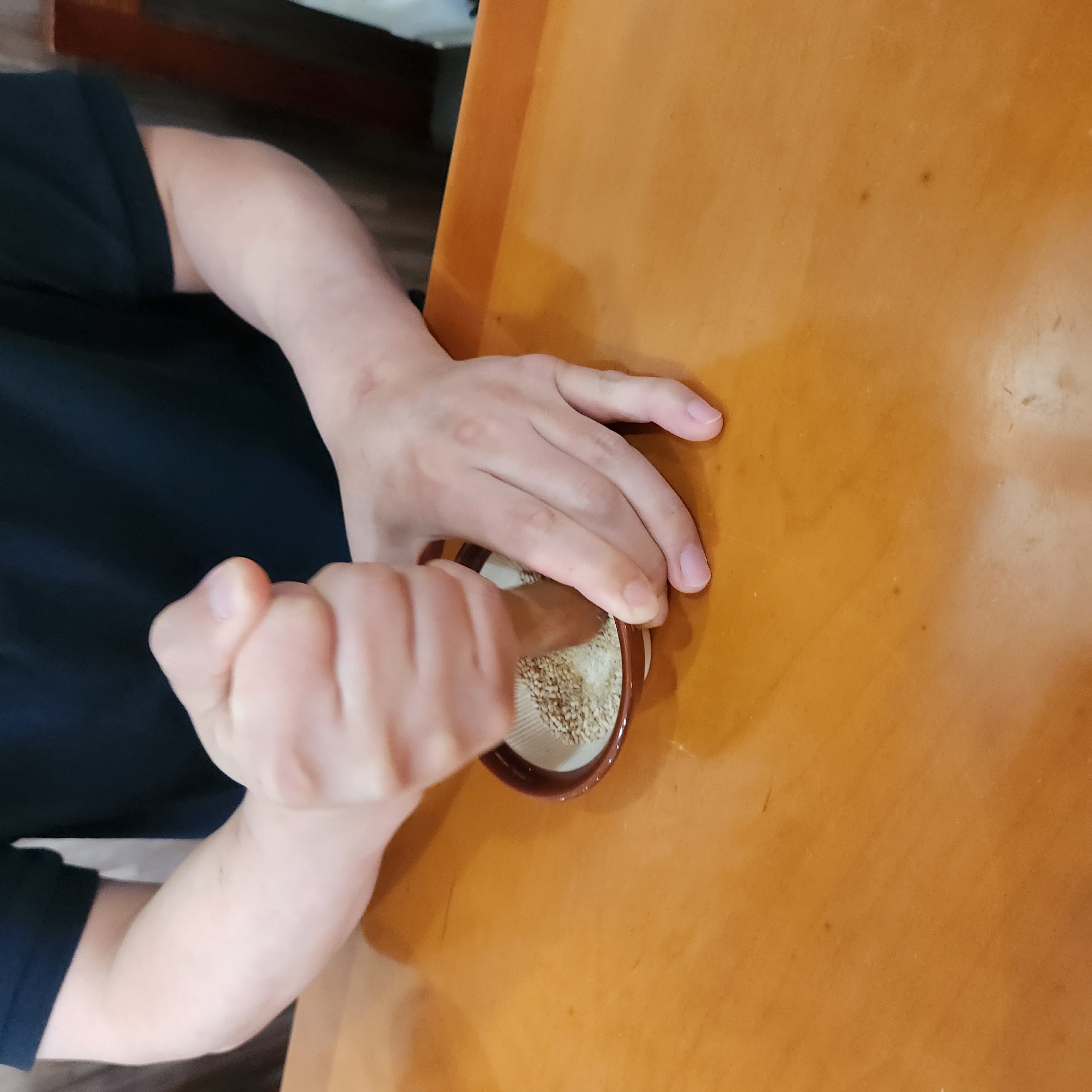 여기에 깨를 주면 셀프로 고소하게 깨소금을 만든다.