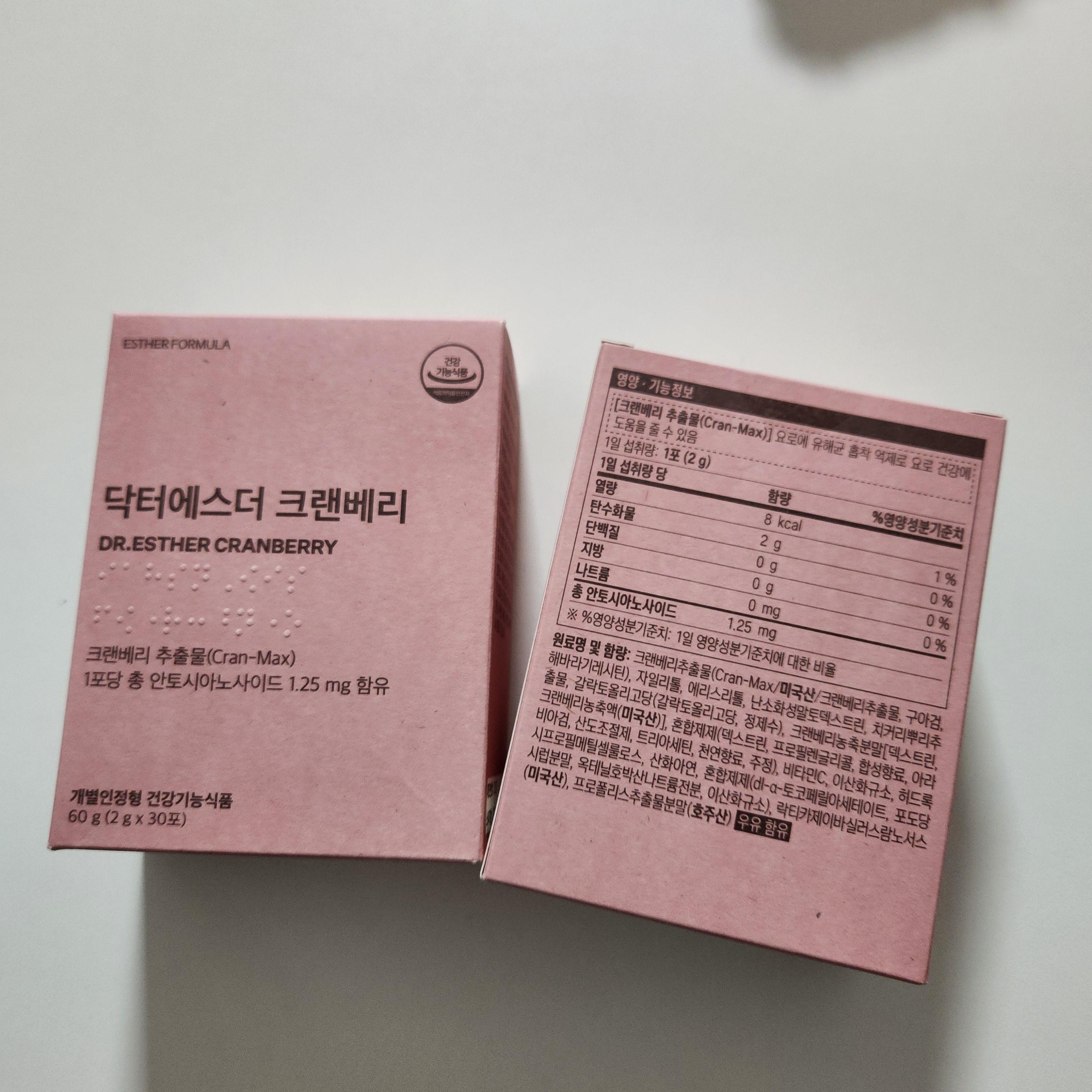 닥터에스더 크랜베리는 포에 든 가루를 하루에 한 번 복용한다.