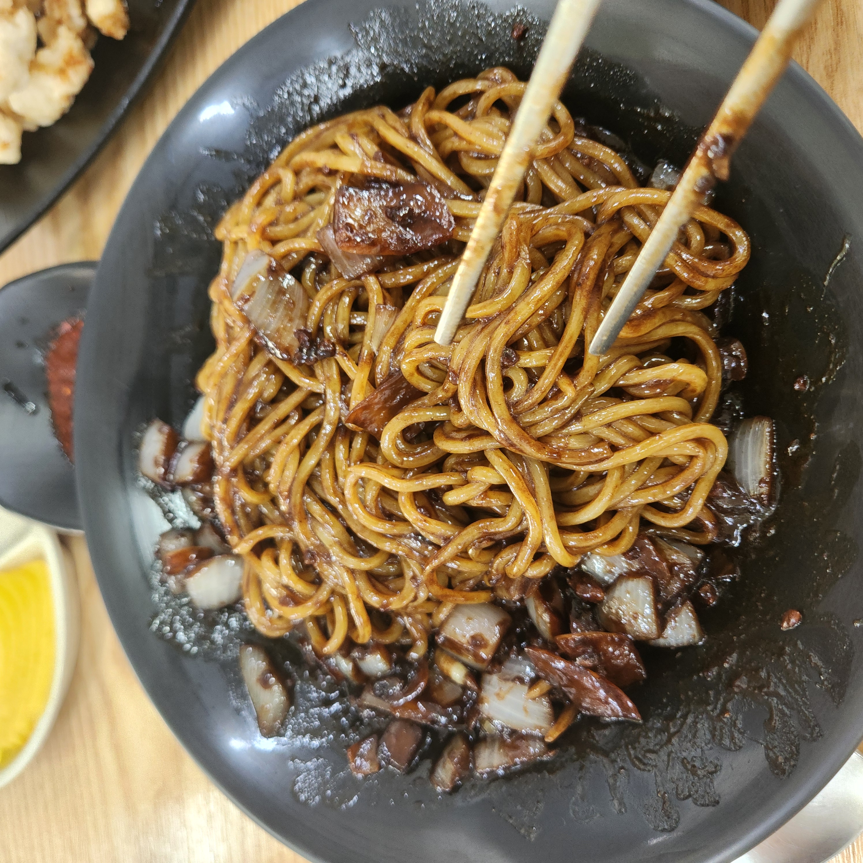 간짜장과 짜장면의 중간 같은 맛인듯.